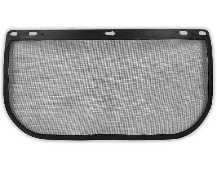 • Protective mesh visor • One size fits all • Brow guard with adjustable headband